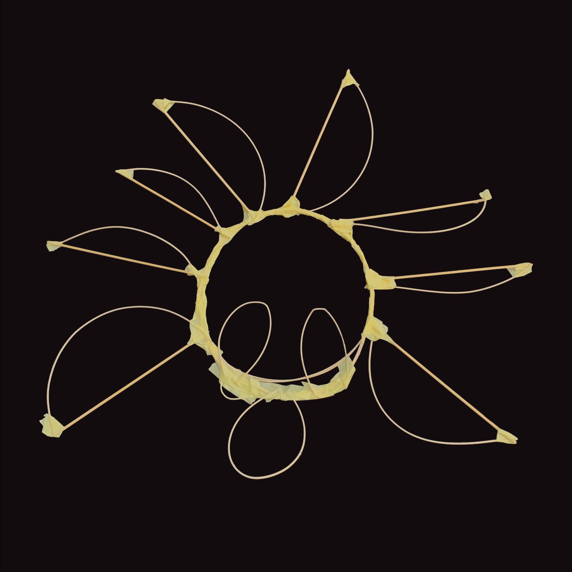 三個階段的造形遊戲,孩子們要發揮自己的想像力,用紙膠帶、竹籤和藤芯來自由表現自己所抽到的主題。每個階段完成時,輪流到台前展示自己的作品,讓台下同學根據作品來猜猜看自己做的是什麼。